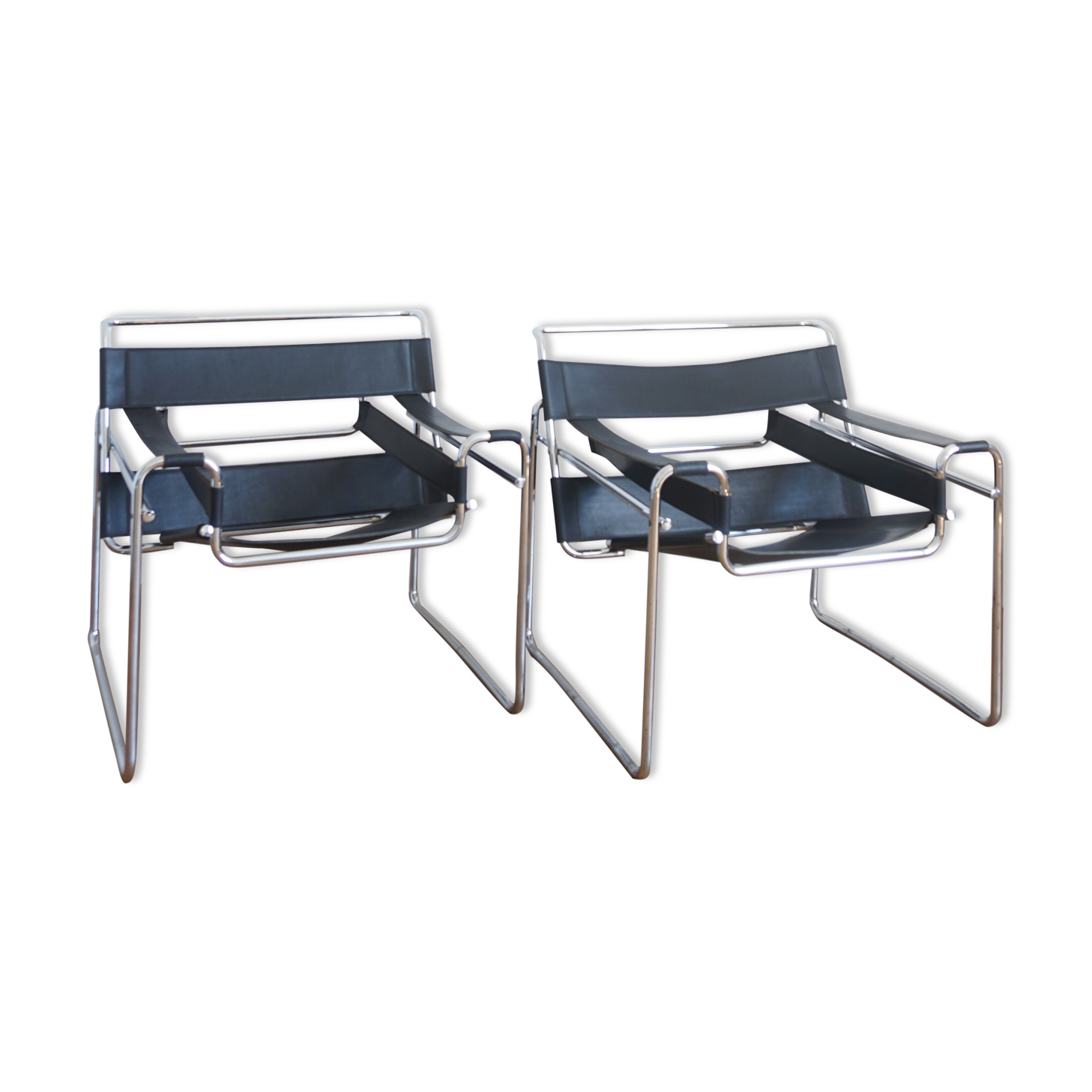 L 78 x p 70 x h 73 cm. Chaises cesca modèle s32 noir, d'après modèle marcel breuer. Rembourré en cuir fleur italien. Lot de 2 chaises en acier tubulaire style breuer, dossier et assise en cuir noir 200.00 € marcel breuer est un architecte et designer hongrois emblématique du design du 20ème siècle. (prix fait en considérant cet aspect) sinon, la chaise est très solide et confortable.